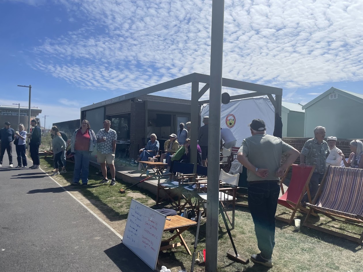 National Croquet Day is set for Sunday 3rd May 2026, but every day should be a Croquet Day, and our clubs will be celebrating in their own unique ways over the next few weeks. Kicking off the nation-wide party were the members of Hove Beach who welcomed Andy Dalby-Welsh (Chief Executive) and Alison Maugham from Croquet England. The members were able to share their stories of this unique club in it’s beautiful setting, showing how the grass roots of Croquet thrive on the seafront of Hove Beach.