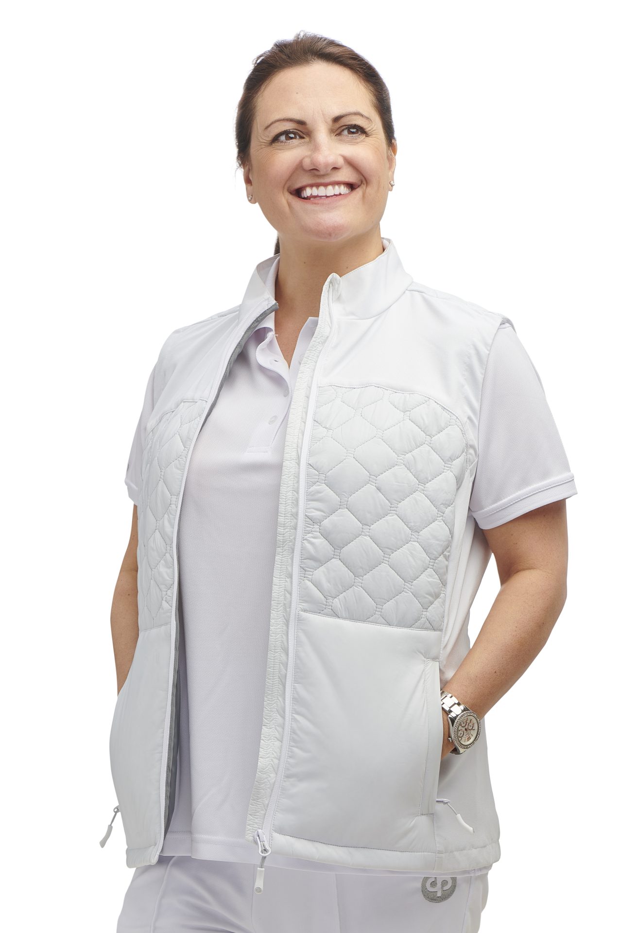 Soft shell sleeveless gilet/body warmer printed with the Croquet England logo on the left breast.